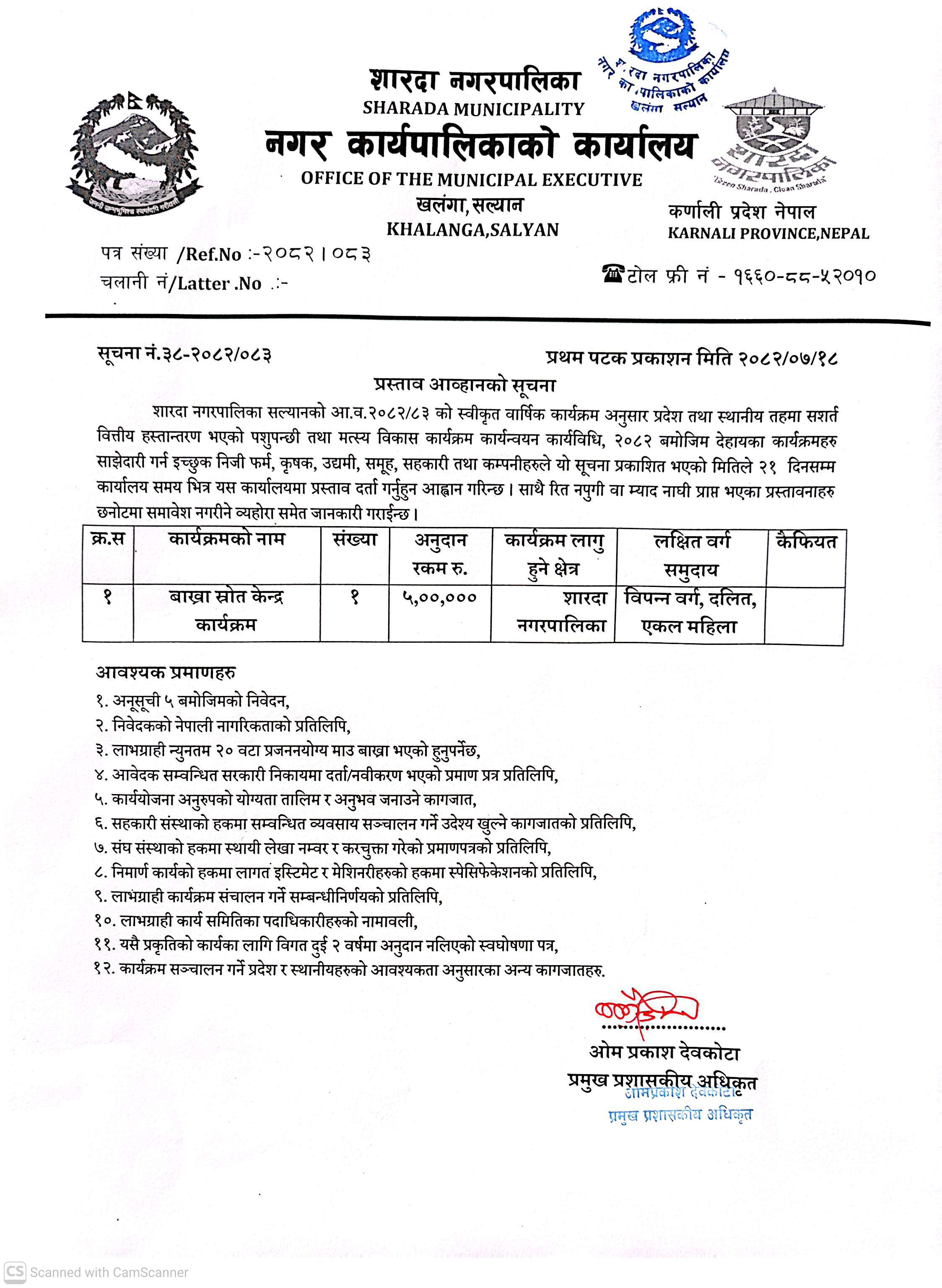 प्रस्ताव आव्हानको सूचना !!