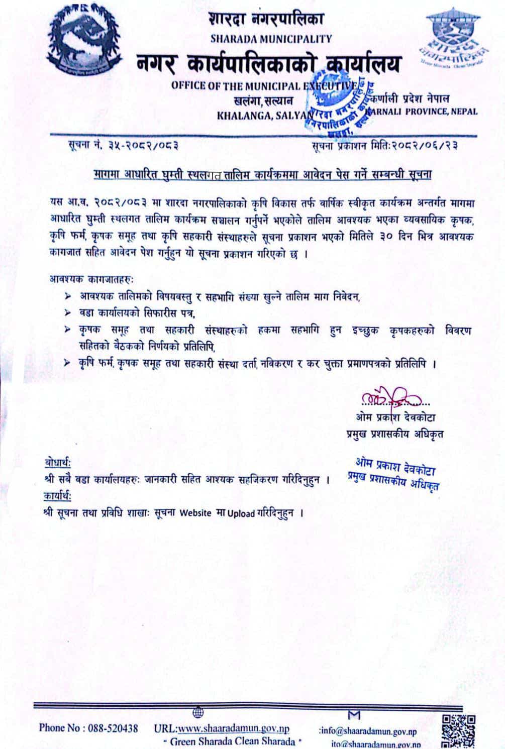 मागमा आधारित घुम्ती स्थलगत तालिम कार्यक्रममा आवेदन पेश गर्ने सम्बन्धी सूचना !