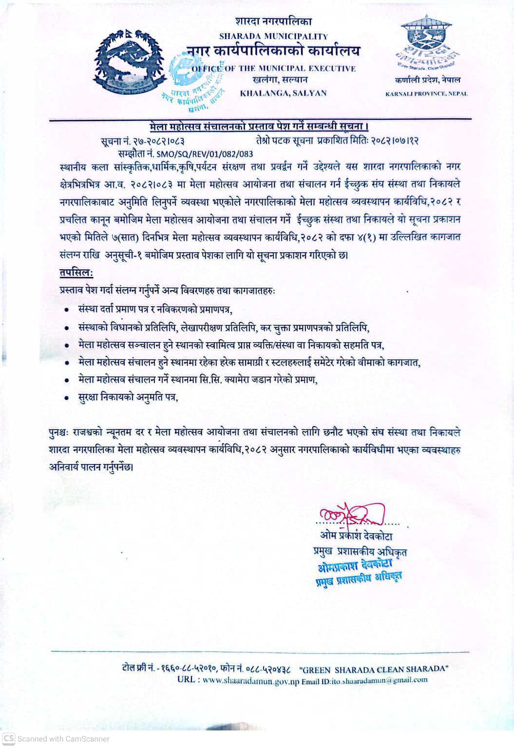 मेला महोत्सव संचालनको प्रस्ताव पेश गर्ने सम्वन्धी तेस्रो पटक प्रकाशित सूचना !!