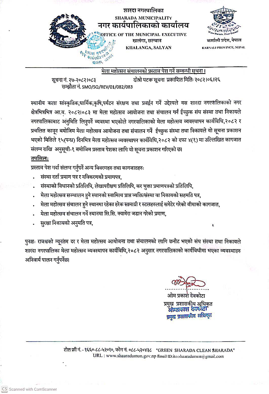 मेला महोत्सव संचालनको प्रस्ताव पेश गर्ने सम्वन्धी दोस्रो पटक प्रकाशित सूचना !!