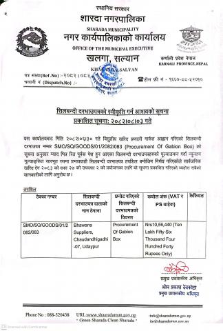 सिलबन्दी दरभाउपत्रको स्वीकृति गर्न आउने आशयको सूचना !!