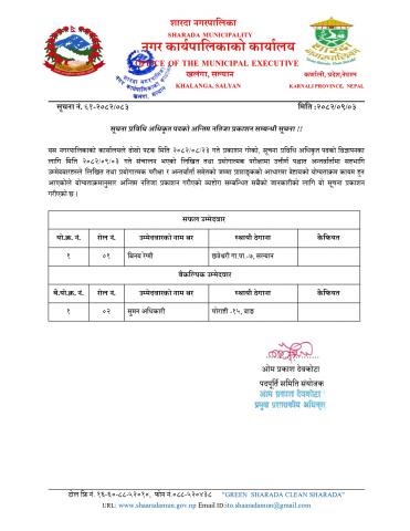 अन्तिम नतिजा प्रकाशन सम्बन्धि सूचना !!