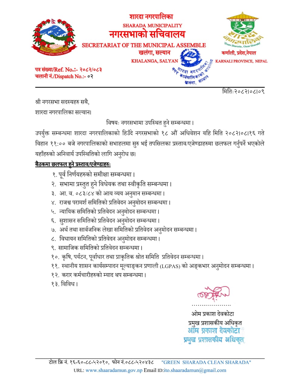 नगरसभामा उपस्थित हुने सम्बन्धमा ।