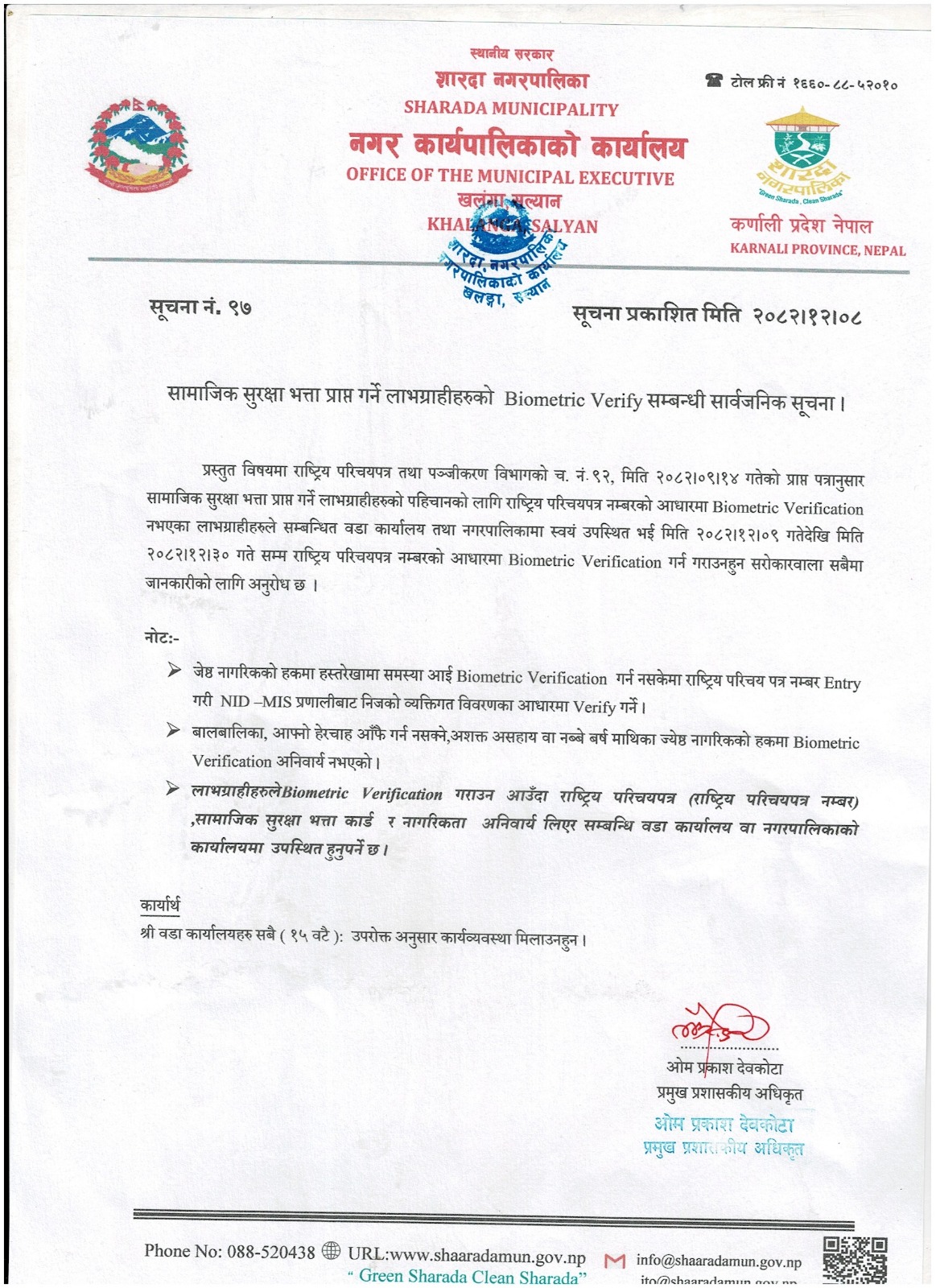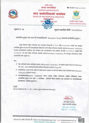 सामाजिक सुरक्षा भत्ता प्राप्त गर्ने लाभग्राहीहरुको Biometric Verify सम्बन्धी सार्वजनिक सूचना !!