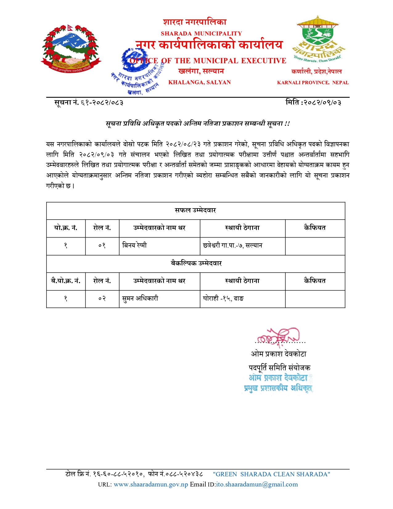 अन्तिम नतिजा प्रकाशन सम्बन्धि सूचना !!