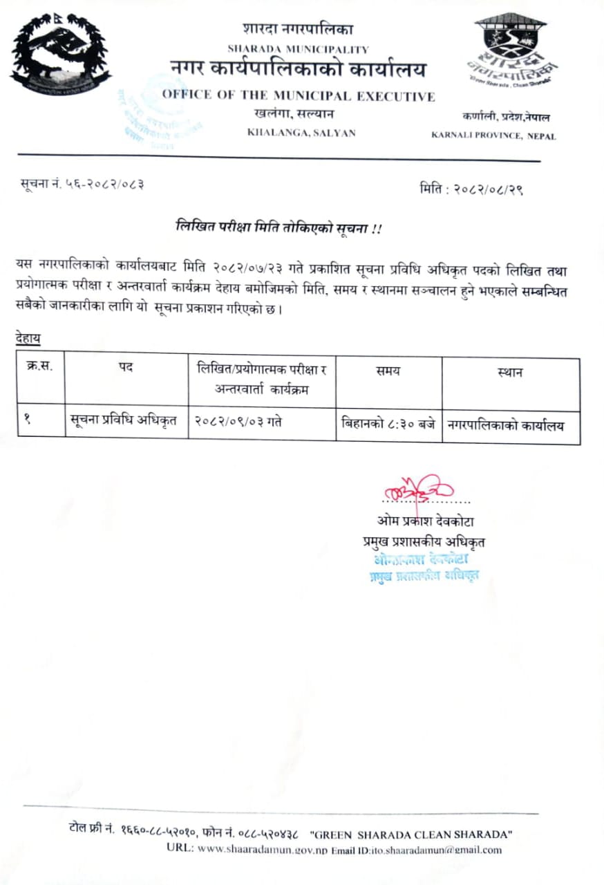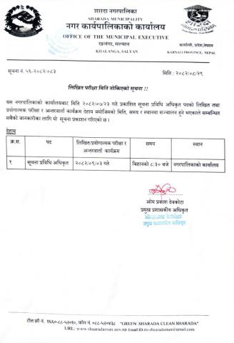 लिखित परीक्षा मिति तोकिएको सूचना !!