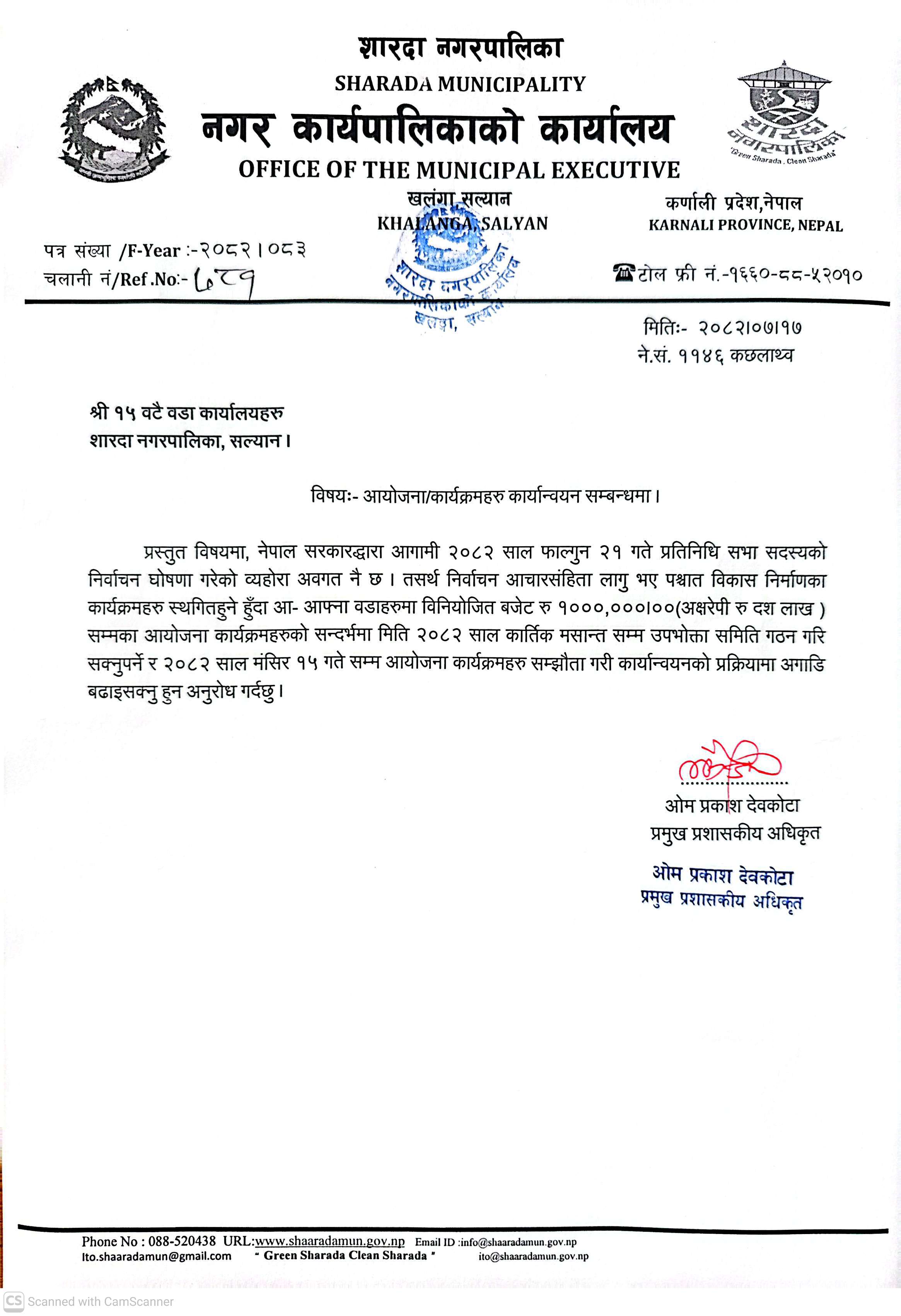 आयोजना/कार्यक्रमहरु कार्यान्वयन सम्वन्धमा !!