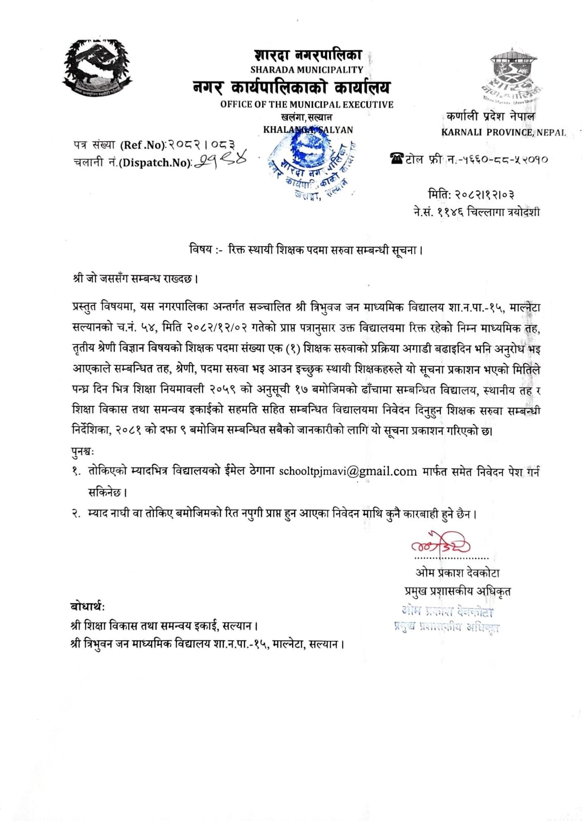 रिक्त्त स्थायी शिक्षक पदमा सरुवा सम्बन्धी सूचना !!